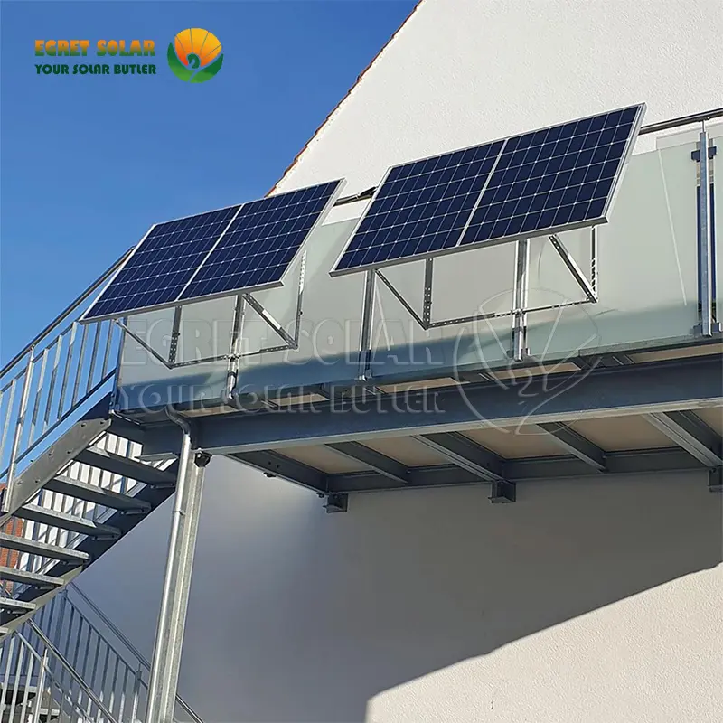 Mukautuva: Monet asiakkaat ovat yllättyneitä siitä, kuinka parvekkeemme aurinkopaneelin kiinnitys mukautuu heidän olosuhteisiinsa Egret-aurinkoenergian ansiosta, kuinka räätälöity heidän olosuhteisiinsa sopimaan.